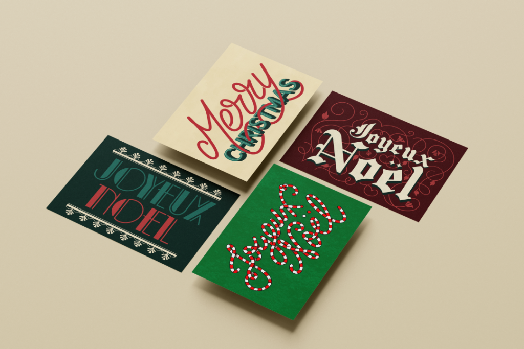 Premier Noël après mes débuts en lettering. Après 10 mois d’apprentissage c’est l’occasion de montrer à ma famille ma nouvelle passion ; et bien sûr de leur faire un cadeau à chacun.