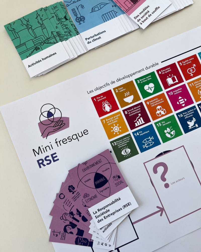 La fresque Tous RSE est une fresque interne SNCF créée par l’équipe pluridisciplinaire du lab SNCF Impact, lab d’innovation qui développe des outils variés pour accélérer l’action RSE de tous les cheminots.