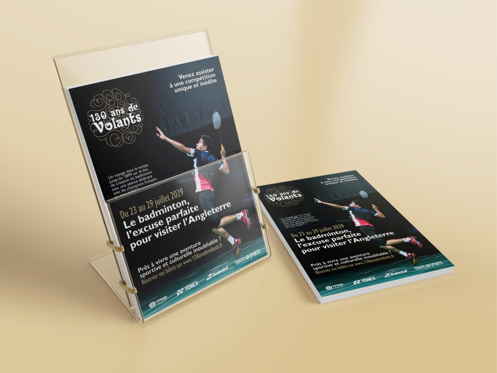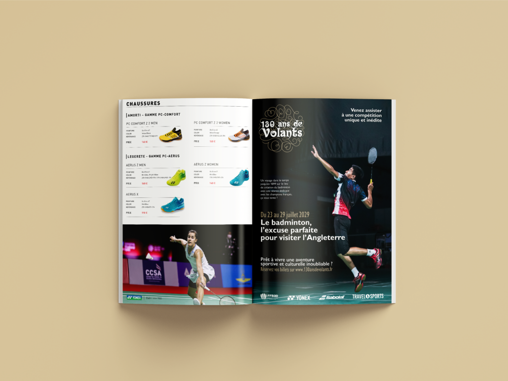 Insertion d’annonces presse dans des magazines et catalogues des partenaires (catalogue Decathlon, magazine 100% BAD par la FFBAD et catalogue Yonex).
