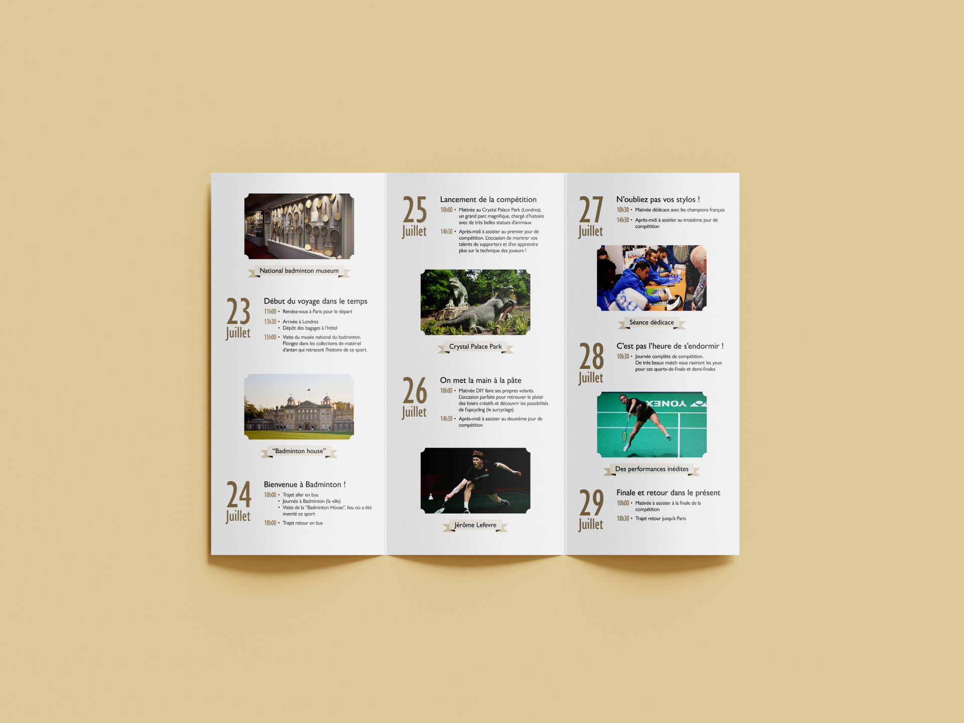Chaque participant aura en sa possession un dépliant pour rappeler les horaires de chaque activités pour préparer au mieux leurs journées.